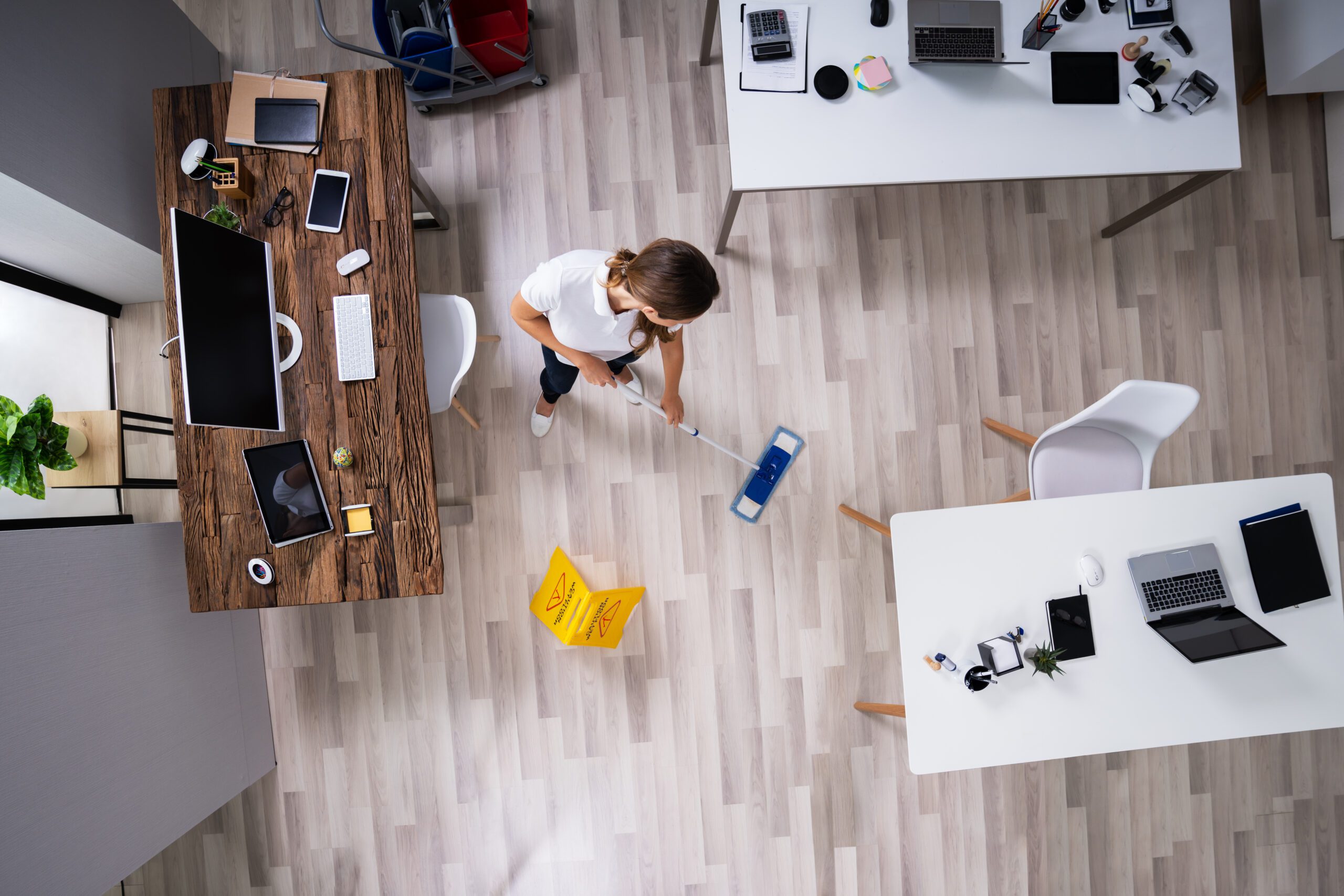 First impressions are important for any business which is why it’s so important to transform your dull and tired floors into gleaming, spotless surfaces. Our approach is tailored to your specific flooring needs; for instance, we utilize gentle fiber cloths on wooden floors to prevent scratches, ensuring that each surface is treated with care. Whether it’s a commercial establishment, a grocery store, or any other space, our floor cleaning services, including daily mopping, and vacuuming, are designed to make your floors sparkle.